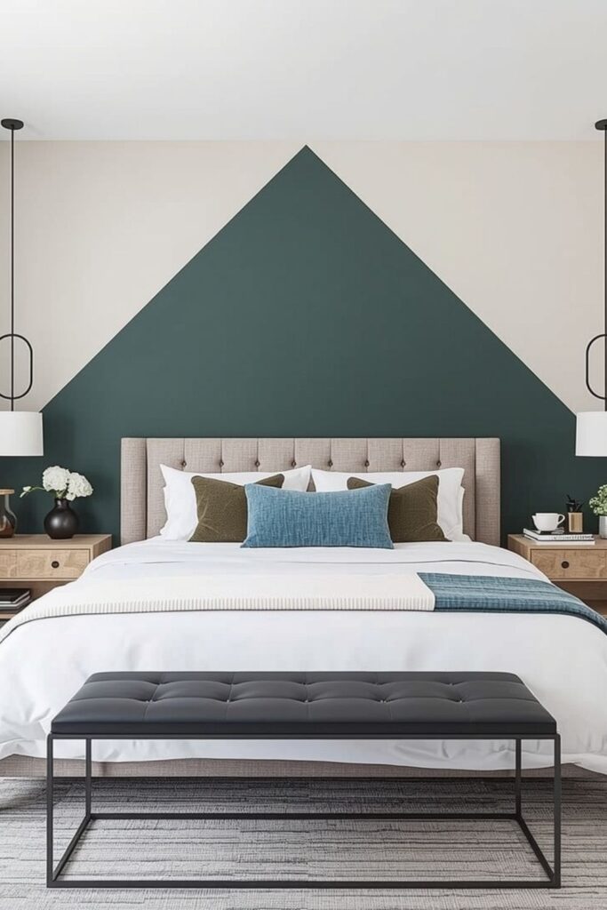 One of the easiest ways to transform a bedroom is by using creative paint techniques. A statement wall painted in a bold color or geometric pattern can instantly add depth and character to the room.