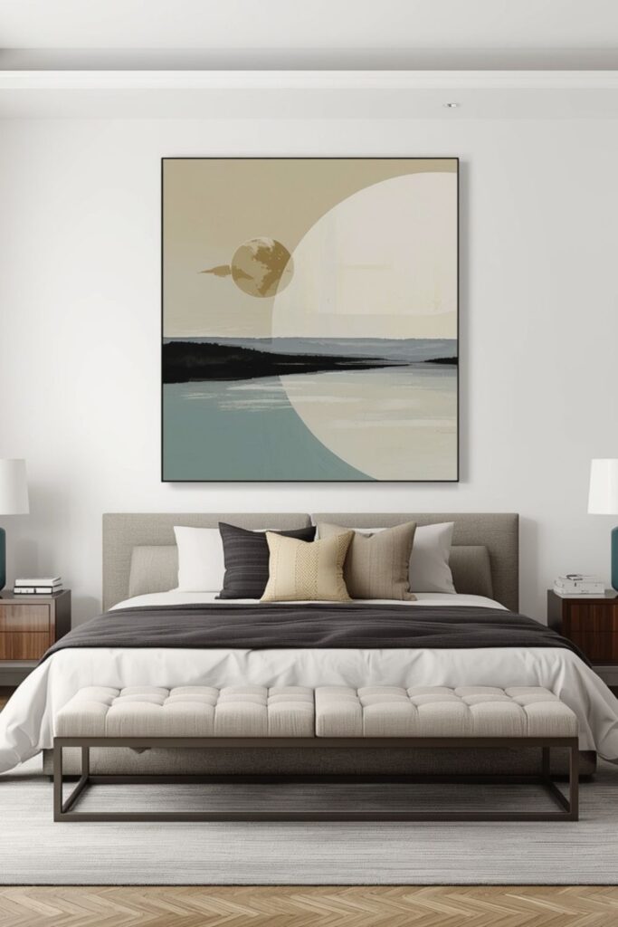 Large paintings, abstract art, or modern photography can instantly elevate the design of the room. The artwork becomes the focal point while the rest of the decor remains simple and balanced.