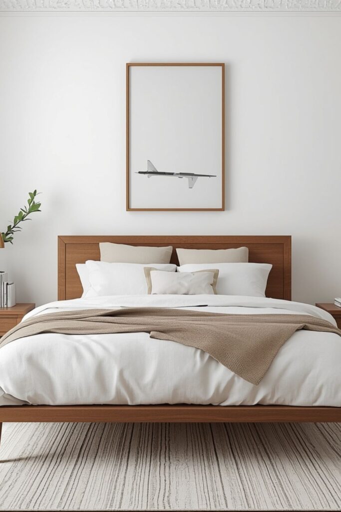 A solid wooden bed frame instantly anchors the room and sets the tone for a cozy atmosphere. Opt for finishes like teak, oak, or walnut that add natural warmth and richness to the space.