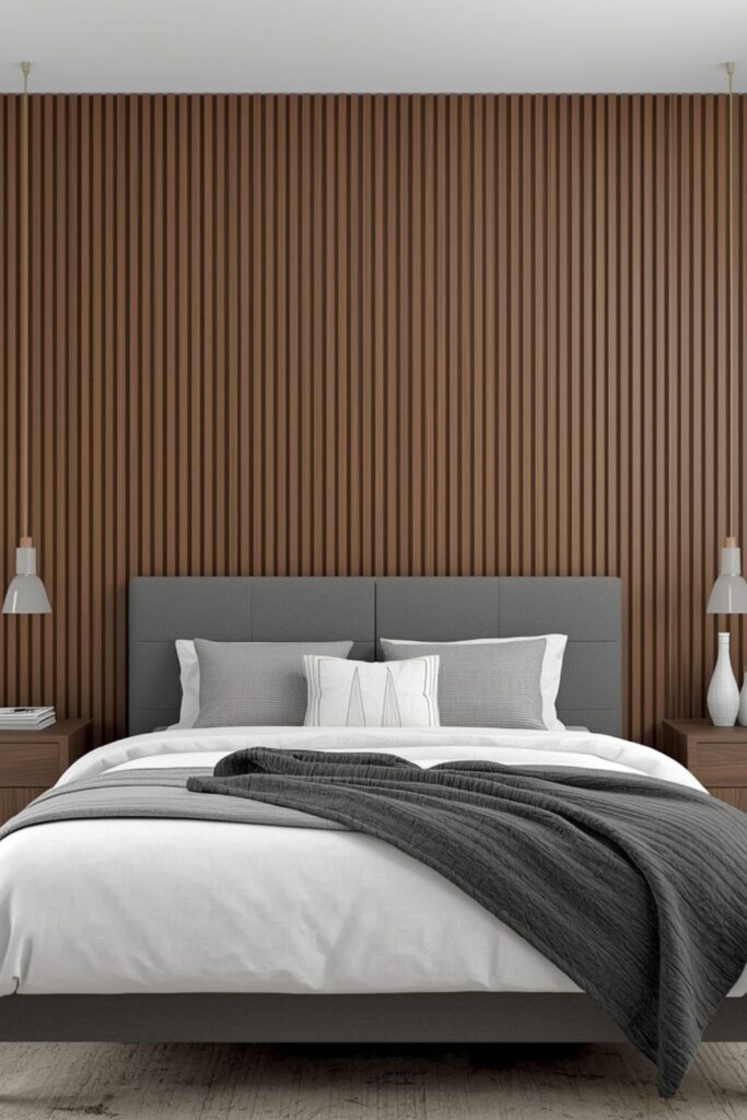 A wooden accent wall behind the bed can dramatically enhance the look of your bedroom by adding texture and depth. Vertical slats or subtle paneling designs are trending in 2026 and give a modern architectural feel.