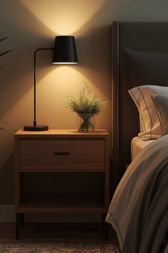 Adding a soft-glow lamp or wall light on top creates a relaxing ambiance perfect for winding down at night. This small addition can significantly enhance the comfort level of your bedroom without requiring major changes.
