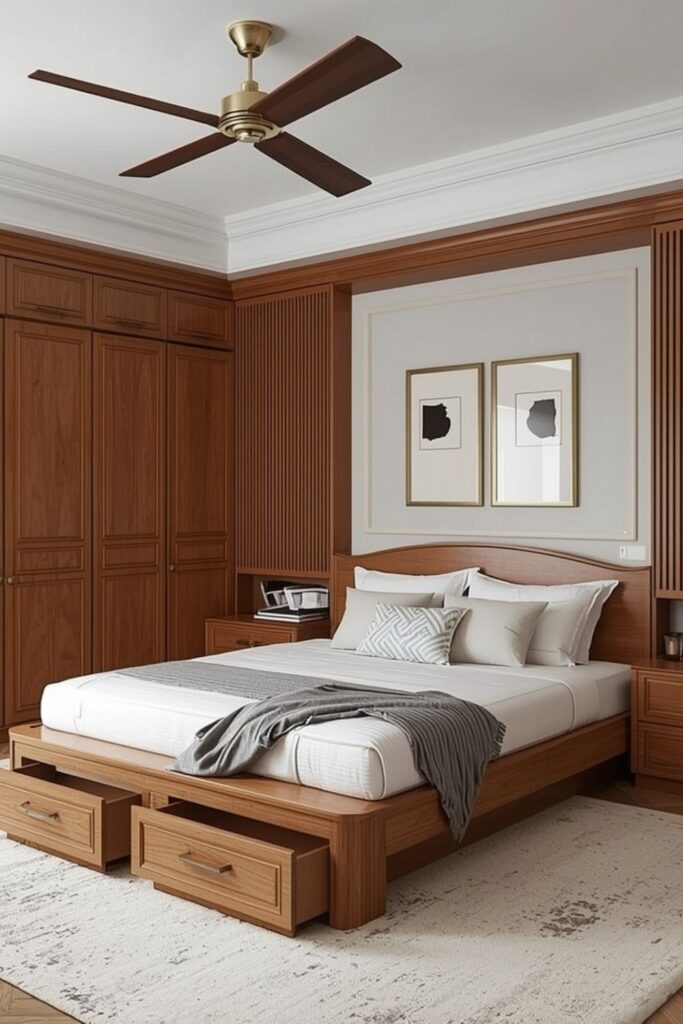 Small wooden decor items like trays, shelves, or photo frames can enhance the overall warmth of your bedroom. These subtle touches help tie the entire design together without making the space look busy.