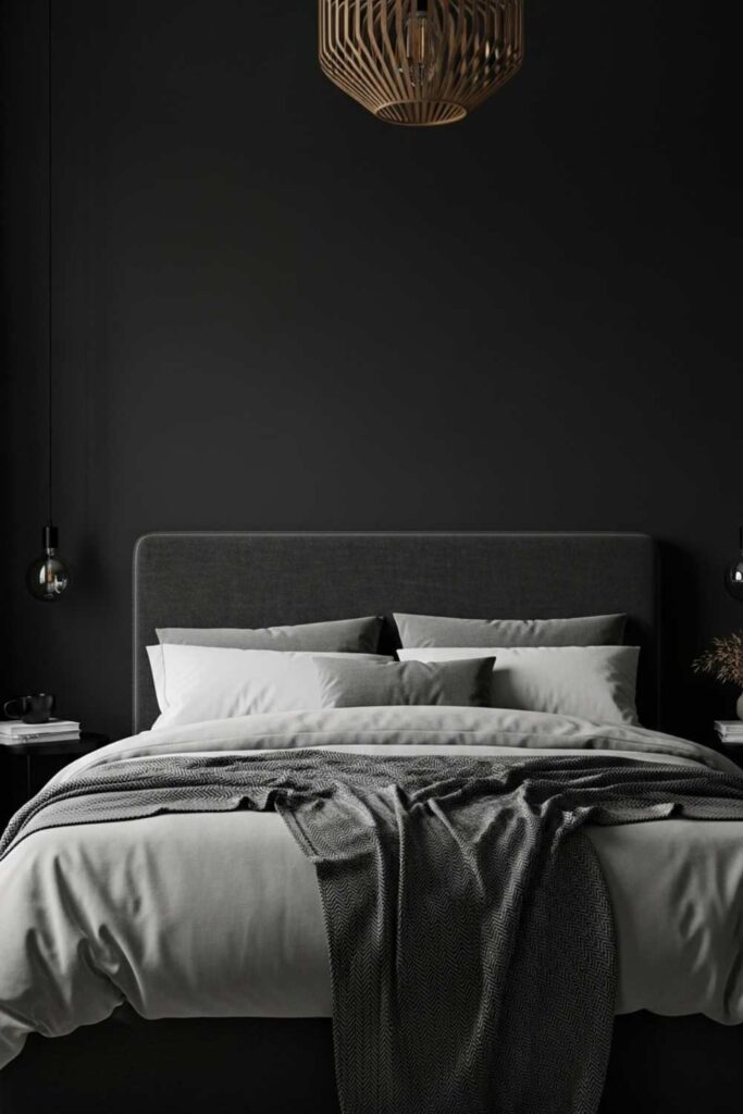 Charcoal is one of the most forgiving dark shades for small bedrooms. It feels softer than pure black while still delivering depth and mood. When used on walls, charcoal creates a cocoon-like effect that makes the room feel intentional rather than tight. This is why many modern dark bedroom ideas for small rooms begin with this shade.