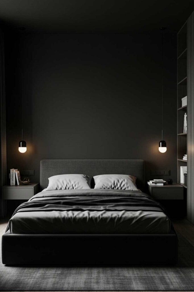 2. Dark Bedroom Ideas for Small Rooms with Soft Black Accents