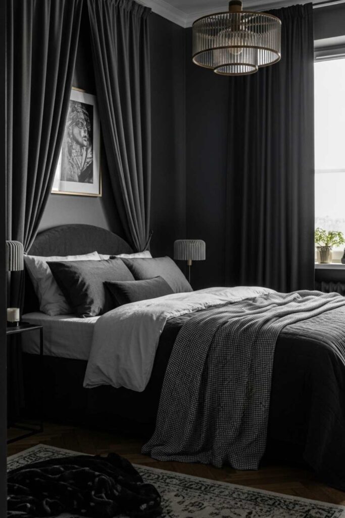 8. Dark Bedroom Ideas for Small Rooms with Soft Fabrics