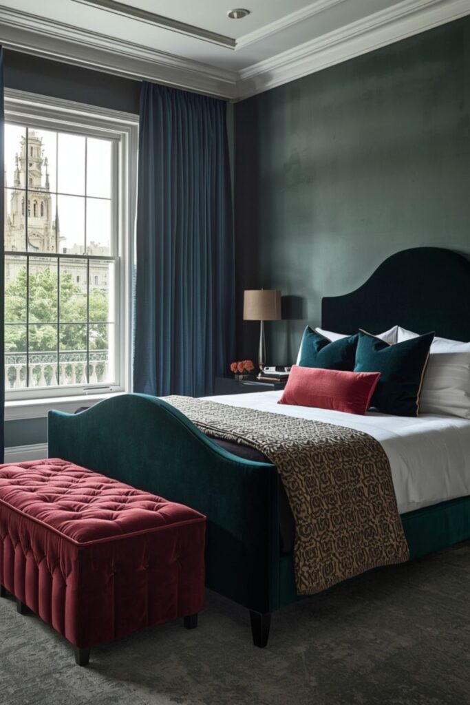 If you want a bedroom that feels romantic and dramatic, velvet fabrics are a perfect addition. Deep colors like burgundy, midnight blue, or emerald green add richness and warmth to the room.