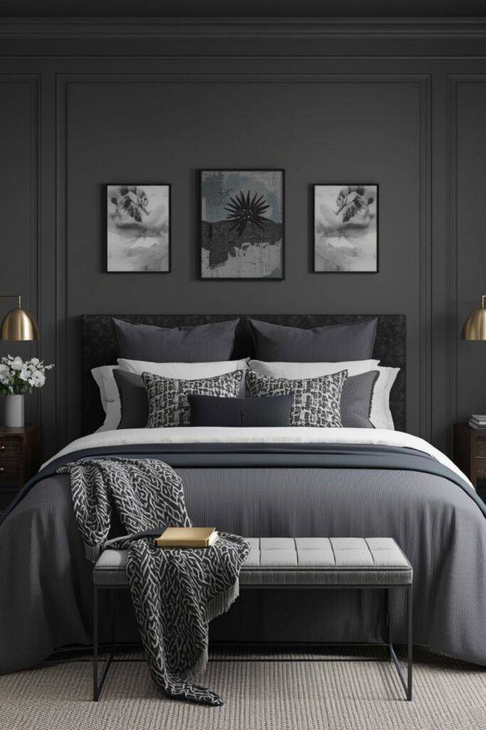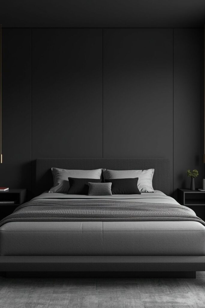 Charcoal grey is one of the most versatile colors for creating a dark bedroom aesthetic. It is deep enough to create drama but still neutral enough to work with different furniture styles and decor elements. This shade works particularly well in modern apartments and contemporary homes.