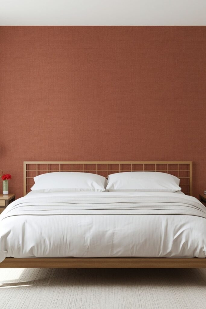 Use wallpaper on a single accent wall preferably behind the bed. In 2026, soft clay-colored textured wallpapers are trending because they bring warmth without overpowering the room. This is especially useful in rental apartments where repainting may not be feasible.