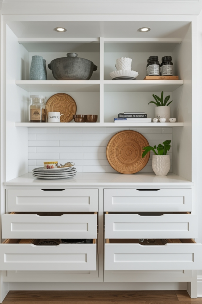 Combining drawers with open shelving creates a balanced storage system. Drawers can hold essential items while open shelves display frequently used or decorative pieces. This adds both function and style.