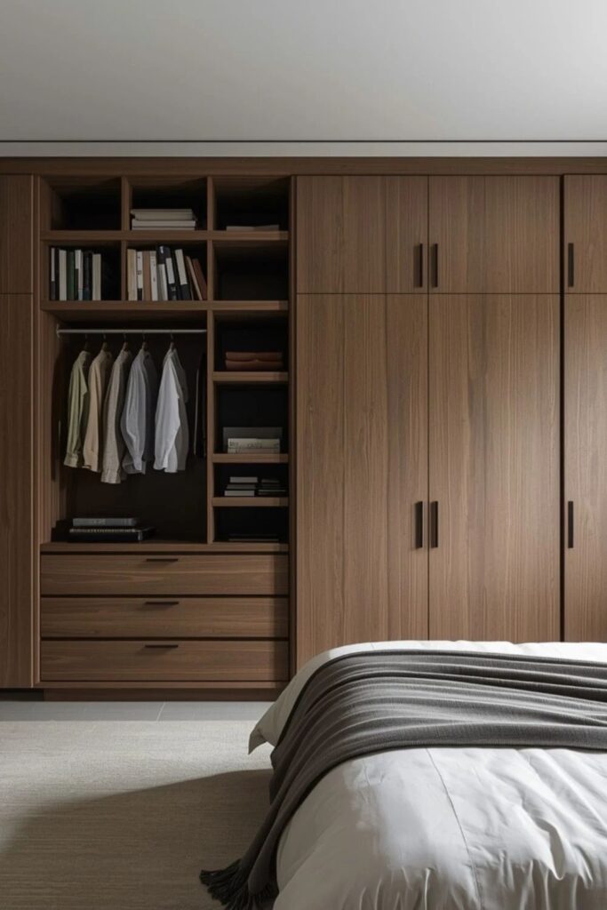 Visual clutter disrupts rest. Hidden storage allows the bedroom to remain visually quiet while still being practical. Built-in wardrobes, under-bed drawers, and minimal cabinetry keep everyday items out of sight.