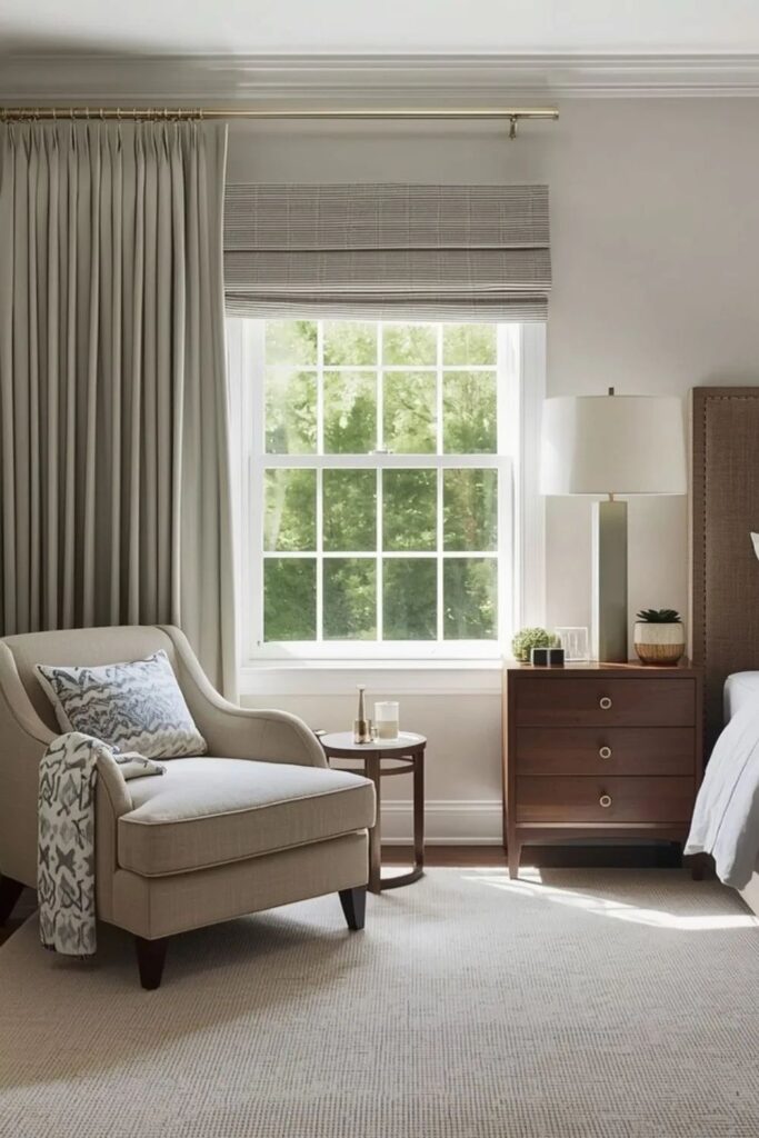 A small seating area transforms a master bedroom into a retreat rather than just a sleeping space. A chair near a window or a bench at the foot of the bed creates a place for slow mornings or quiet evenings.