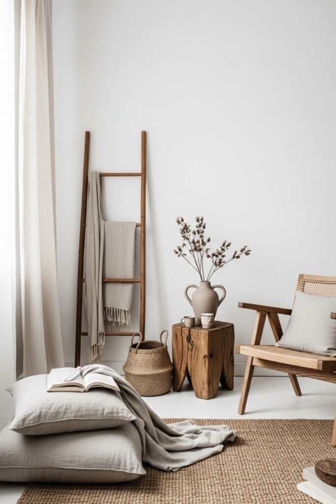 Minimal design does not mean the room should feel empty or lifeless. Instead of adding numerous decorative objects, introduce different textures through materials like linen, cotton, wood, or woven fabrics. These elements create subtle visual interest without adding clutter.