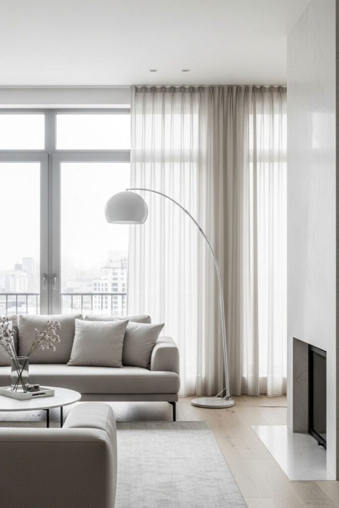 Natural light is one of the most powerful tools in minimalist design. Large windows, sheer curtains, and reflective surfaces help brighten the room and make the space feel more expansive.