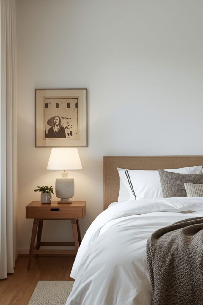 Minimalist bedroom decor ideas do not remove personality from the space. Instead, they encourage meaningful choices. A single artwork, a bedside lamp, or a small plant can add character without overwhelming the room.