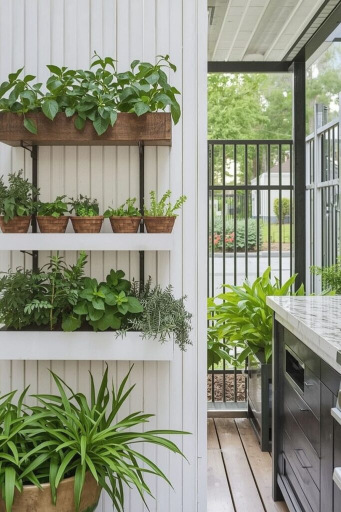 Many simple outdoor kitchen ideas incorporate herb gardens or vertical planters nearby. Fresh herbs like basil, mint, and coriander can be picked directly while cooking, making the outdoor kitchen both functional and visually appealing.