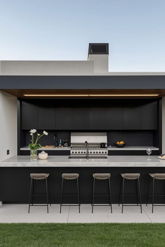 Minimalist outdoor kitchens are becoming a major trend in contemporary homes. Modern outdoor kitchen ideas focus on clean lines, neutral colors, and uncluttered surfaces to create a sleek and sophisticated appearance.