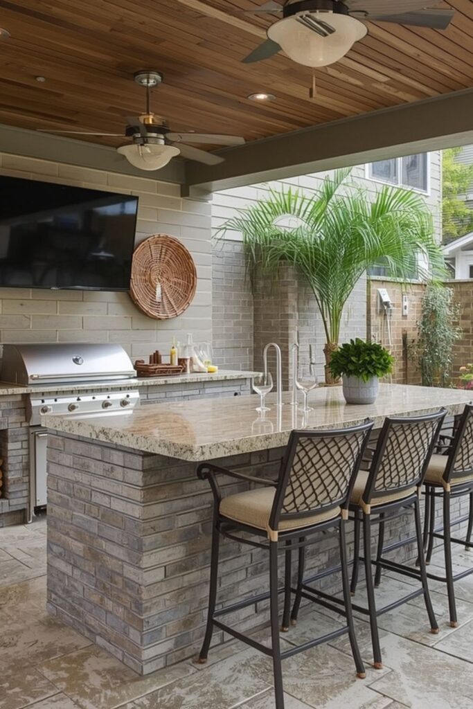 This layout is commonly seen in Outdoor Kitchen Ideas homes where gatherings and celebrations are frequent. The dining counter also doubles as a serving station, making it easier to host parties or weekend family dinners.