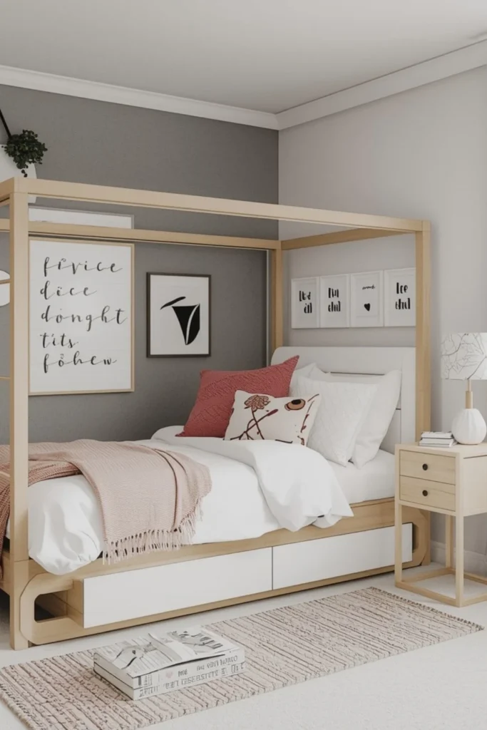 For smaller bedrooms, controlled wall styling is even more important. When walls stay visually balanced, the room feels larger and more organised. This makes it a strong option within teenage girl bedroom ideas aesthetic trends seen in T1 countries.