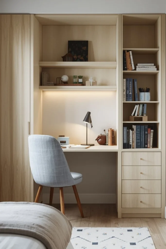 This setup works particularly well in small bedrooms where space is limited. When the study zone blends naturally with the bedroom design, it supports routine without making the room feel like a classroom.