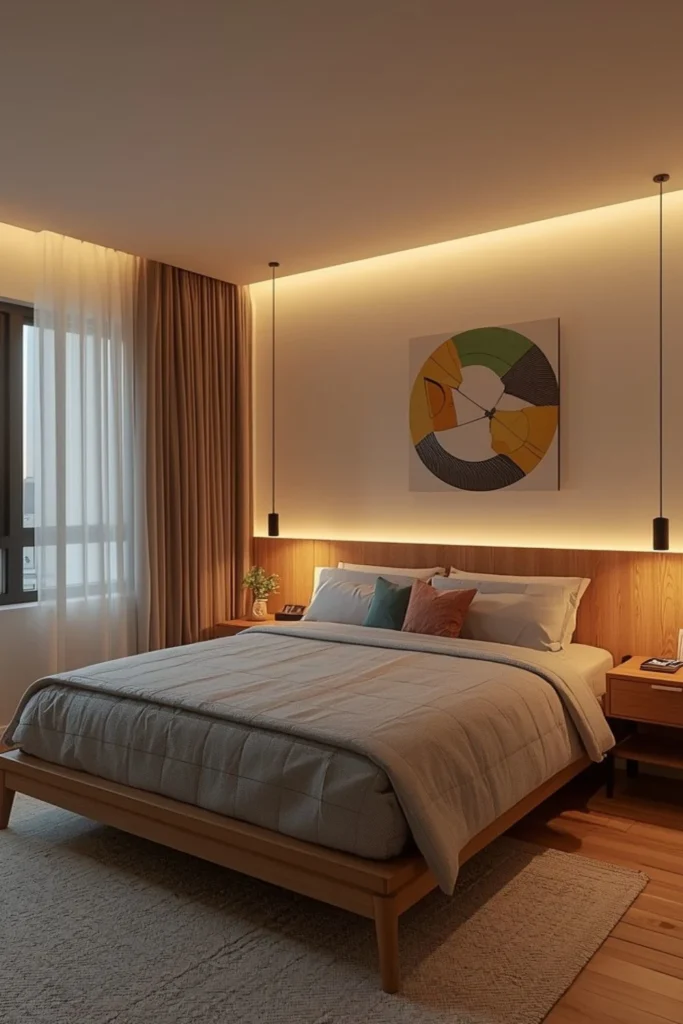 Warm lighting in the evening helps the body relax, while focused desk lighting supports study time. This makes the bedroom adaptable to different moods and routines.