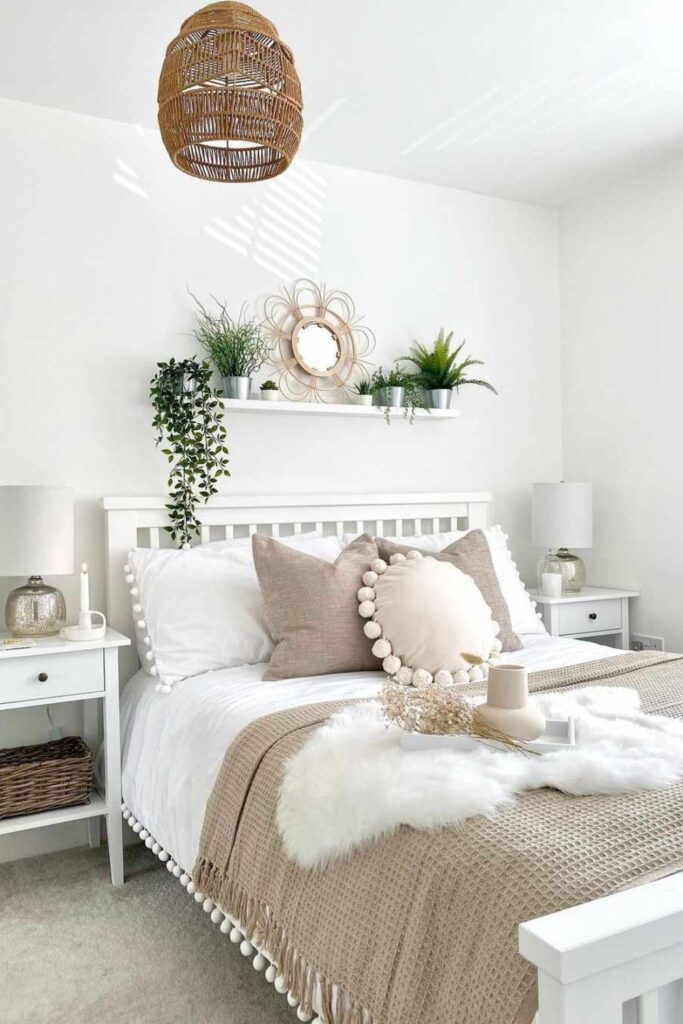 No. When layered with texture and soft lighting, white and cream bedrooms feel warm and sophisticated rather than plain.