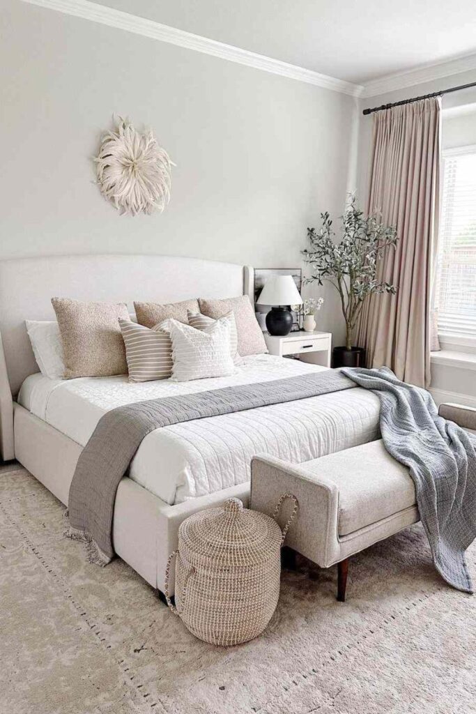 In modern white and cream bedroom ideas, this layering approach feels inviting rather than styled. It supports relaxation and makes the bedroom feel like a retreat at the end of the day. The bed becomes calm and comforting, not decorative for show.