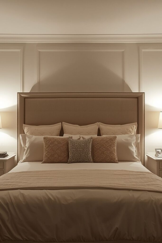 This choice works especially well in modern cream bedroom ideas, where the focus is on calm elegance. Upholstery adds warmth, making the bedroom feel welcoming rather than minimal in a cold sense.