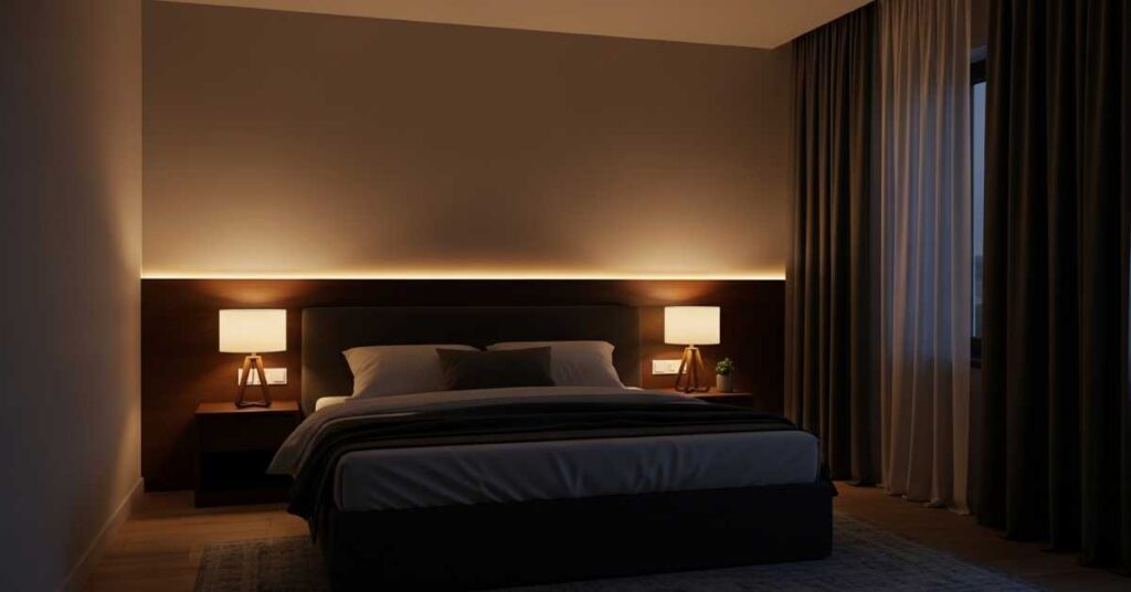 Lighting plays a major role in how a bedroom feels. Harsh ceiling lights can make a room feel cold, while layered lighting creates warmth and comfort. Bedside lamps, warm LED strips, and wall lights provide gentle illumination.