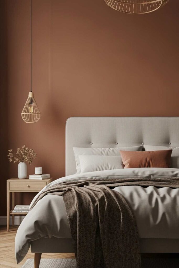 Muted clay tones bring an earthy warmth that helps the body feel grounded. These colors connect the bedroom to natural landscapes and create a sense of stability.