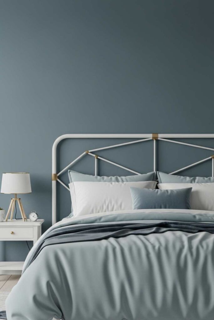 In peaceful bedroom paint color ideas, blue works best when it has grey or green undertones. These prevent the color from feeling cold or overly energetic.