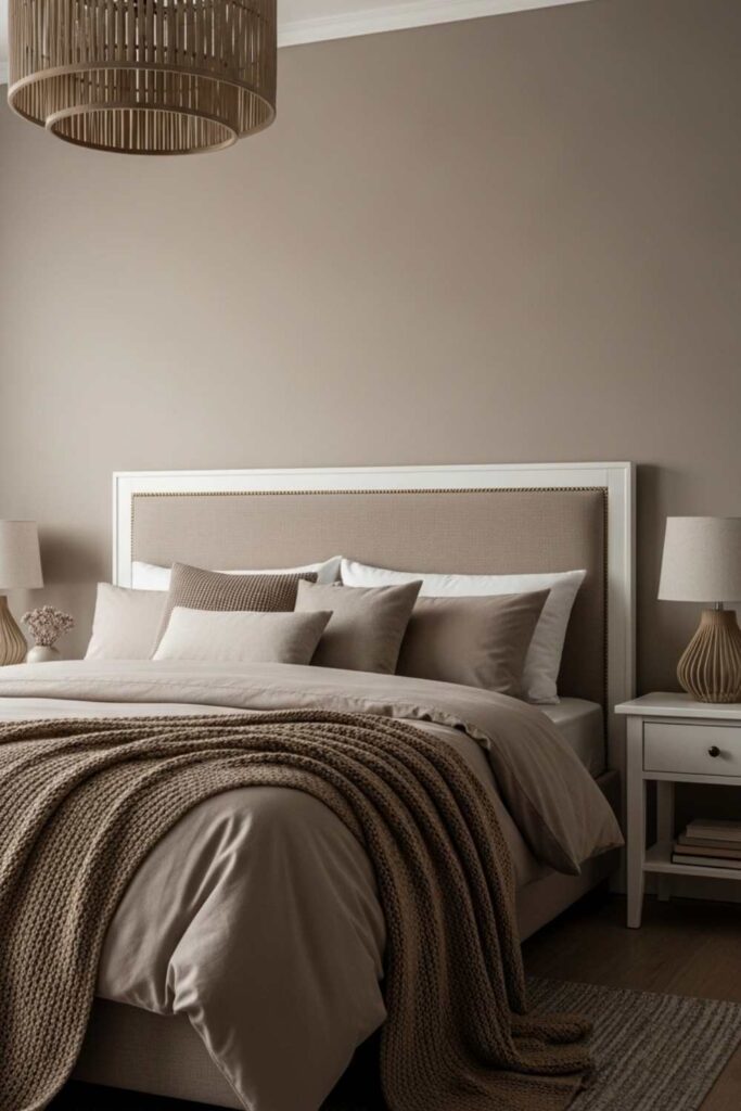 Light taupe is often chosen in cozy bedroom paint colors because it creates warmth without darkness. It pairs well with soft textures and low lighting, enhancing the feeling of comfort and safety.