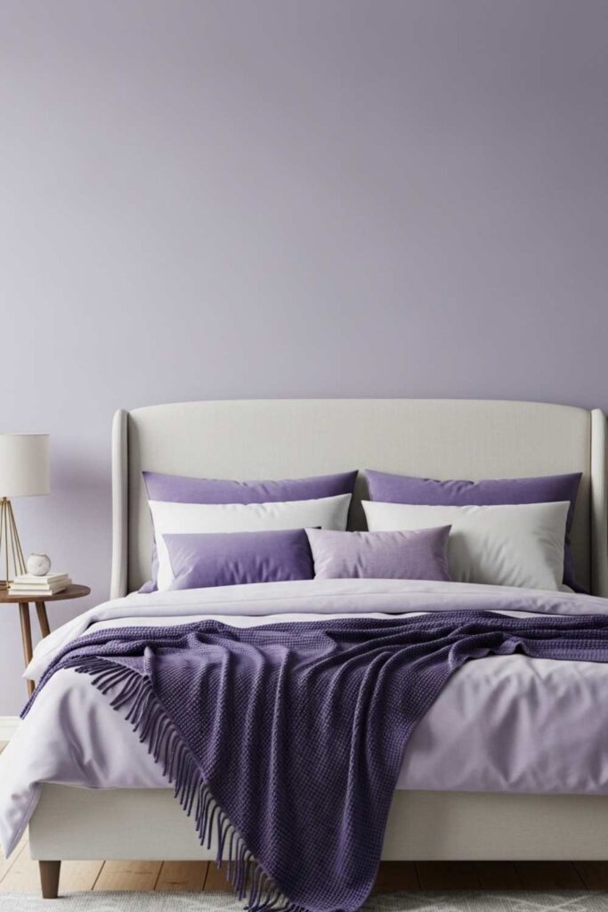 When lavender is muted and greyed, it becomes a deeply calming color rather than a decorative one. Soft lavender has been shown to support relaxation and emotional balance, making it suitable for bedrooms designed around rest.