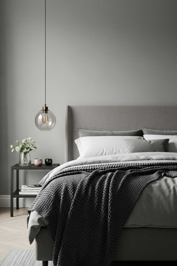 In calming bedroom colors for adults, grey works best when paired with warm lighting and soft textiles. This prevents the space from feeling sterile or emotionally distant.