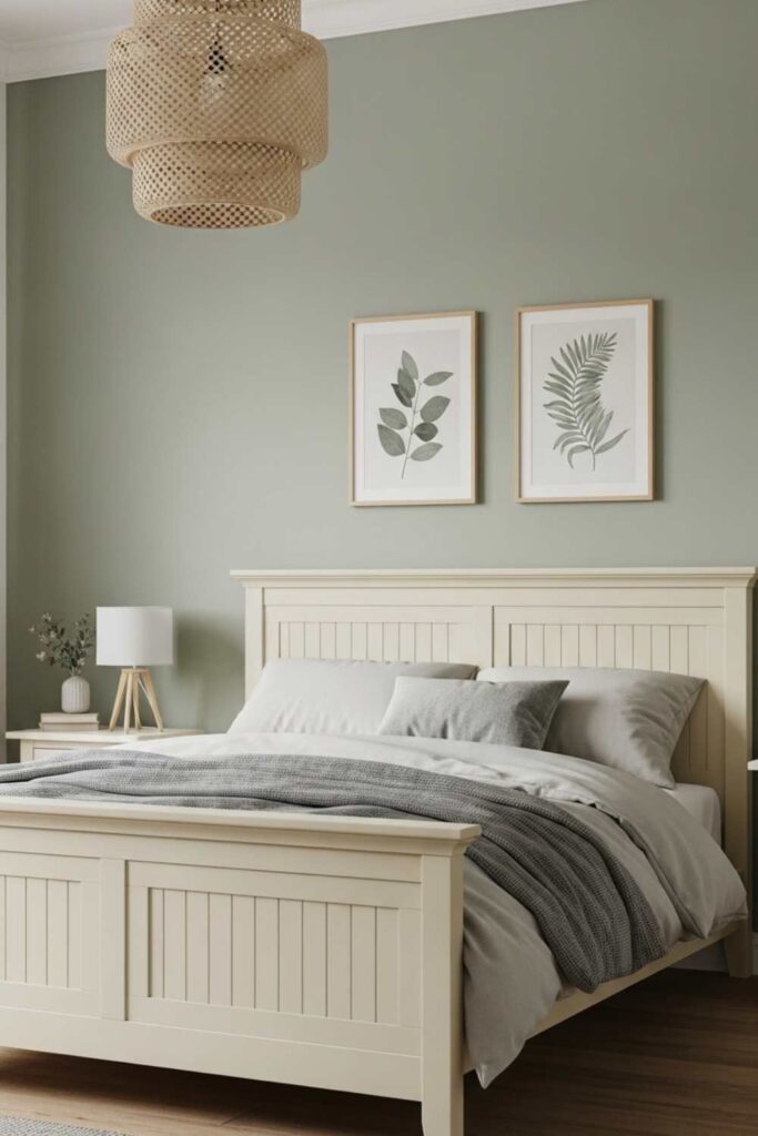2. Sage Green and Cream Bedroom Palette