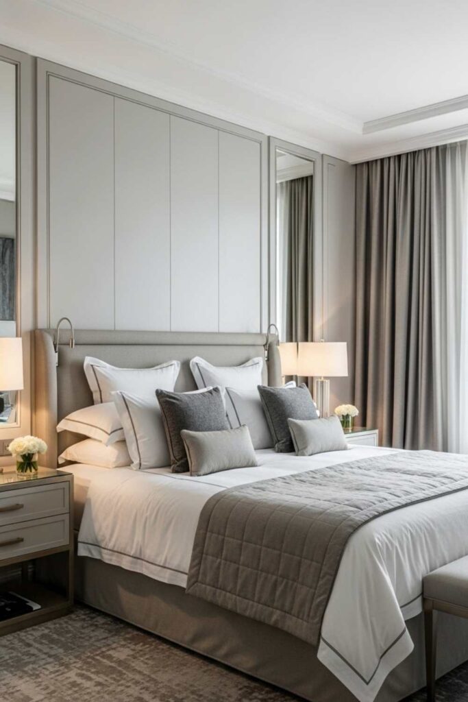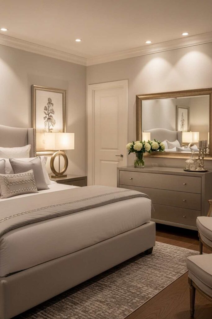 A neutral luxury bedroom begins with calm, grounded colors such as ivory, soft beige, warm taupe, and subtle greige. These shades instantly relax the mind and create a visual softness that feels welcoming rather than overwhelming. Neutral tones allow the bedroom to feel larger, brighter, and more open, which is essential for timeless luxury.
