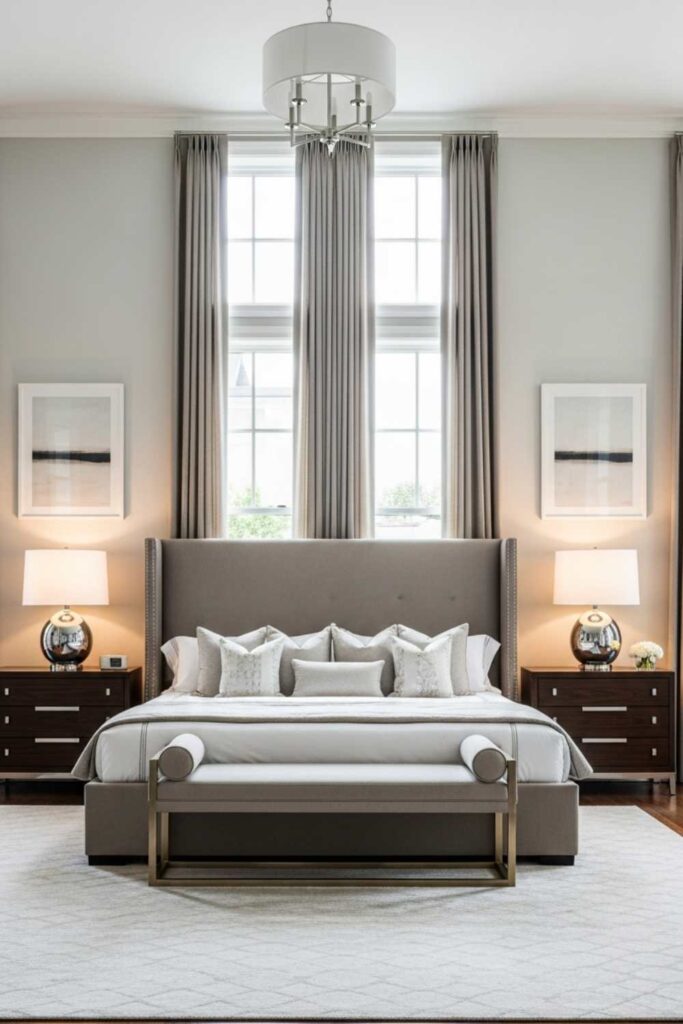 This design works exceptionally well for luxury master bedroom interiors because it adapts beautifully over time. Seasonal changes can be made through textiles alone, while the base design remains elegant and evergreen. This timeless quality also makes it ideal for Discover and Pinterest visibility.