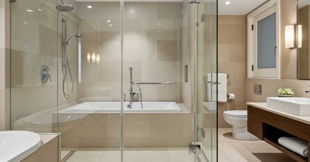 Even in a small modern luxury bedroom design, this approach keeps the suite feeling spacious. When paired with neutral stone tiles and minimal hardware, the shower becomes part of the cohesive design story rather than a separate zone.