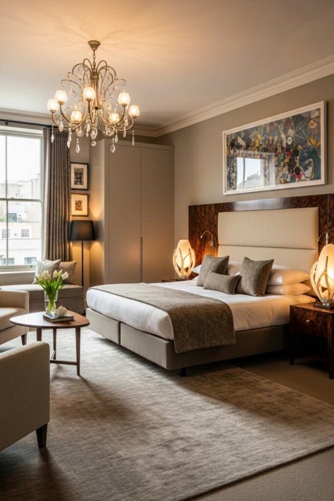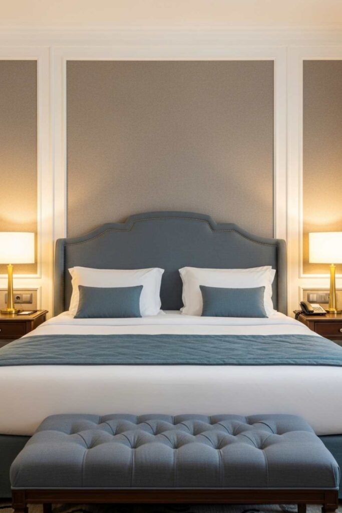 9. Boutique Hotel Bedroom with Subtle Metallic Accents