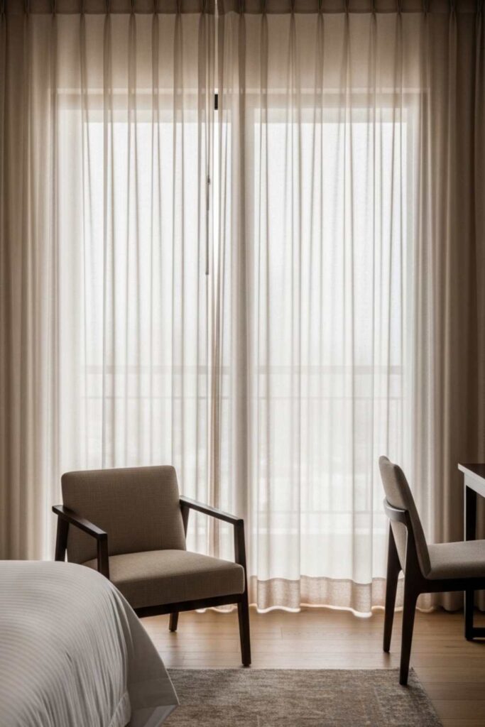 13. Boutique Hotel Bedroom with Sheer Curtains and Daylight