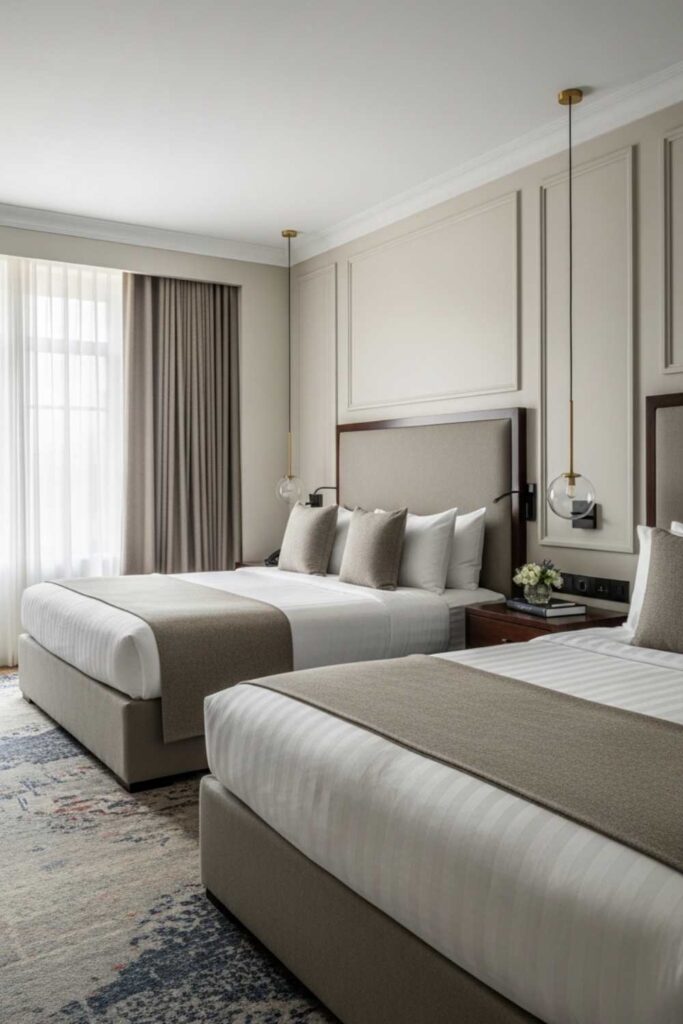 Symmetry remains a core principle in modern hotel bedrooms because it appeals universally across cultures and design preferences.