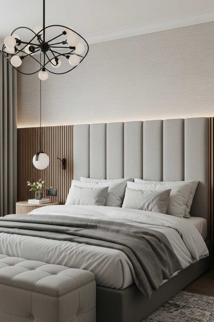 Surrounding walls are typically kept minimal to allow the headboard to breathe visually. Soft wall colours and balanced bedside lighting frame the bed and reinforce symmetry. This creates a strong sense of intention while keeping the room calm and uncluttered.