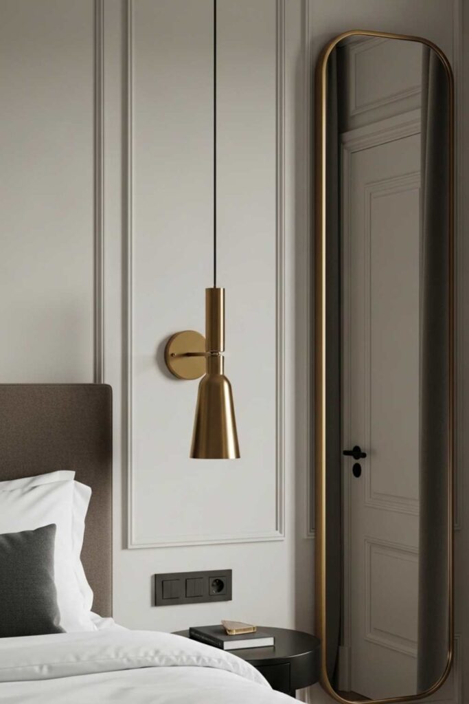 Metallic accents add refinement when used sparingly. In boutique hotel bedrooms, brushed brass, soft gold, or matte black details introduce elegance without visual noise.