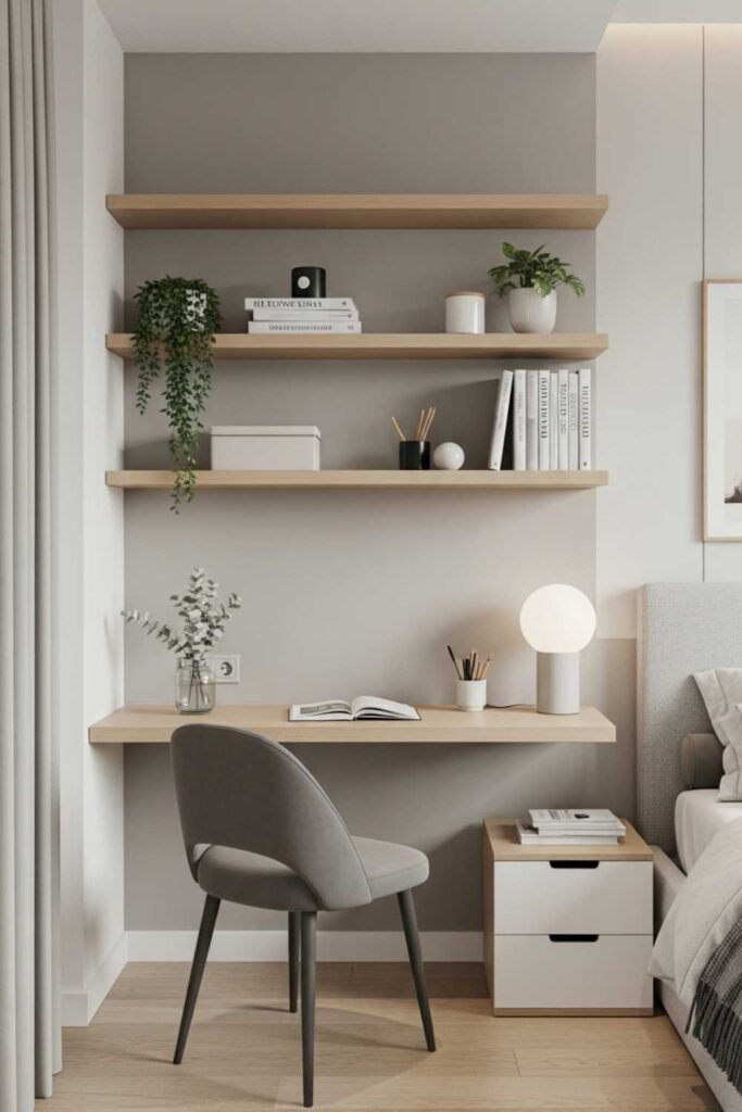 10. Desk-Adjacent Shelving for Multi-Use Bedrooms