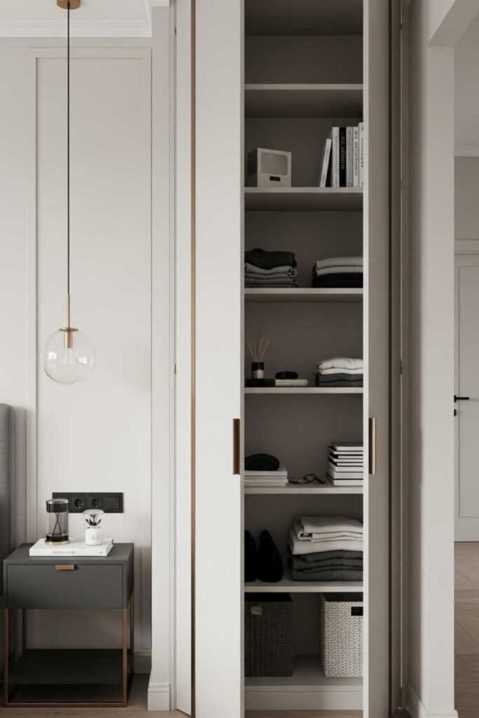 This design aligns with bedroom shelving ideas for small rooms, where space efficiency matters most.