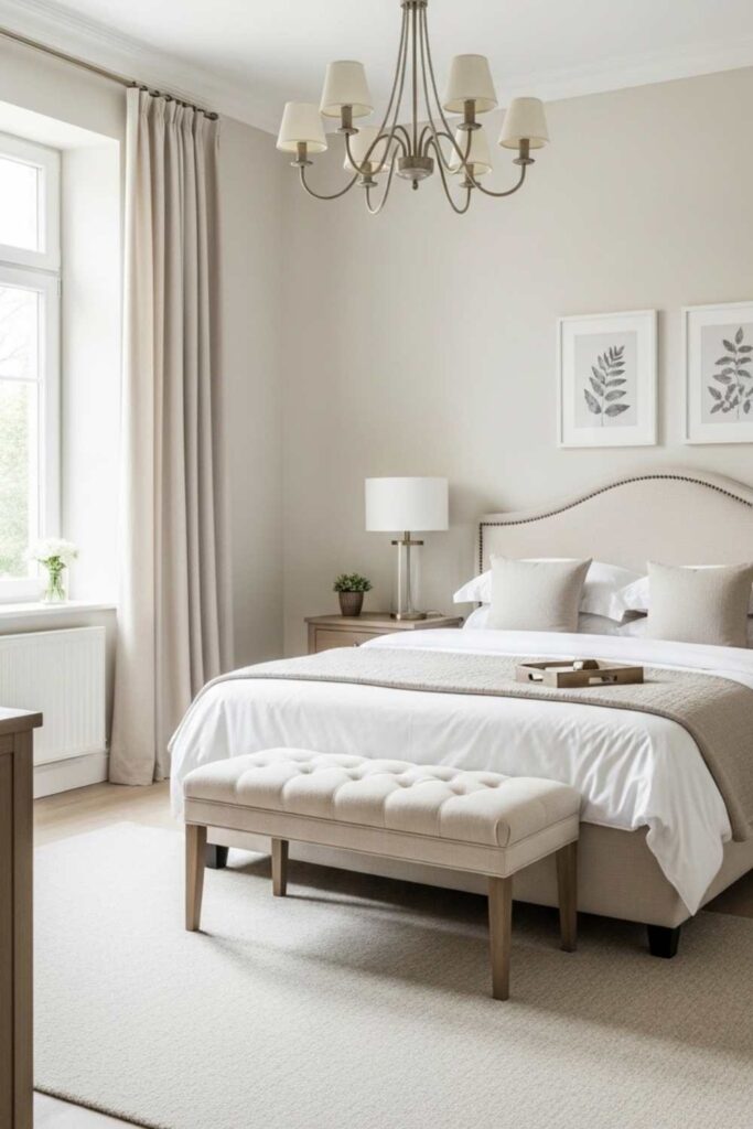 A small cream accent chair or bench can transform the bedroom into a relaxing retreat. Seating areas provide a space for reading, dressing, or simply unwinding before sleep.
