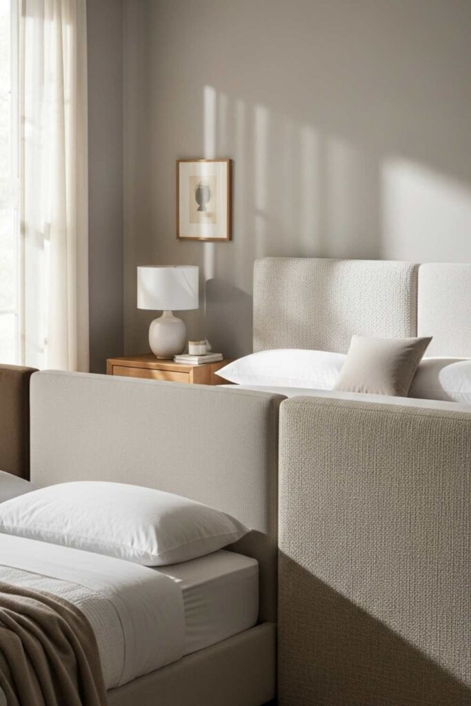 An upholstered headboard instantly makes a bedroom feel more refined. Cream fabric headboards add softness and comfort, especially in rooms where neutral tones dominate.