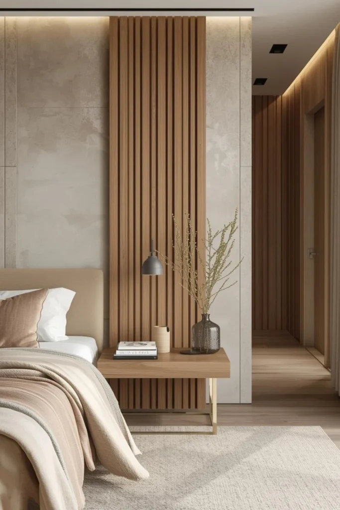 Modern luxury bedroom design ideas often begin with a strong yet subtle foundation. Walls, flooring, and large surfaces are kept calm to allow luxury to feel effortless. Neutral tones, warm greys, soft beiges, and muted earth shades help establish a refined backdrop that feels serene rather than dramatic.