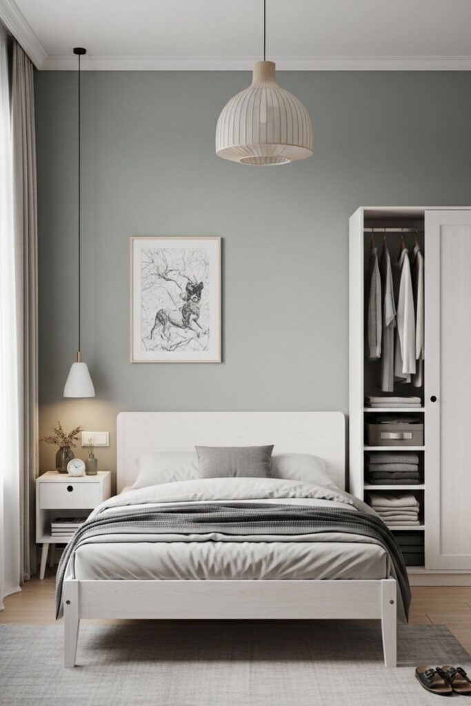 Choosing furniture with simple shapes and slim profiles helps reduce visual weight. Beds with clean frames, narrow nightstands, and compact wardrobes allow the room to function without feeling overfilled. The fewer unnecessary items present, the calmer the space becomes.