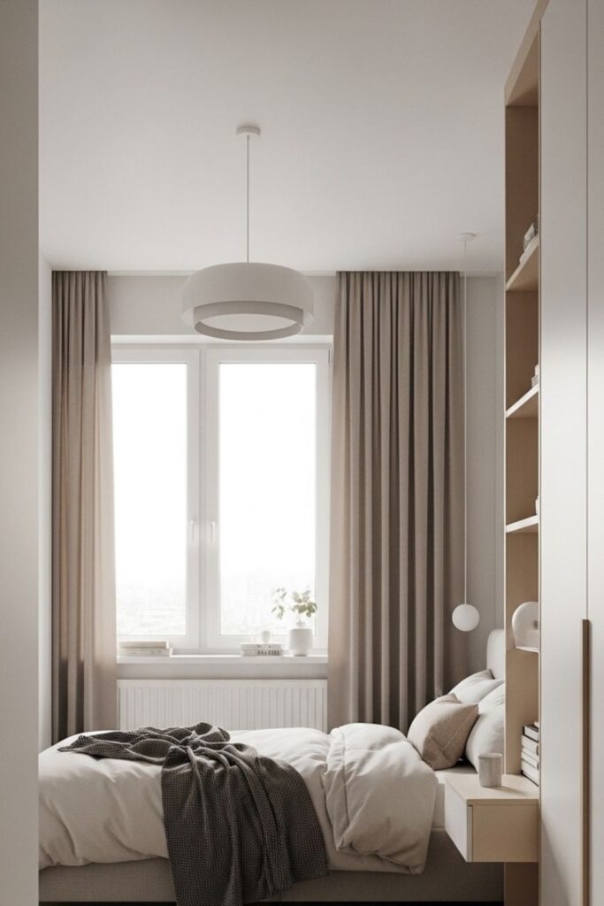 Neutral tones also reflect natural light more effectively, which makes small bedrooms appear larger. Walls, bedding, and curtains in similar color families create a seamless look that removes visual interruptions. This continuity helps the room feel peaceful rather than busy.