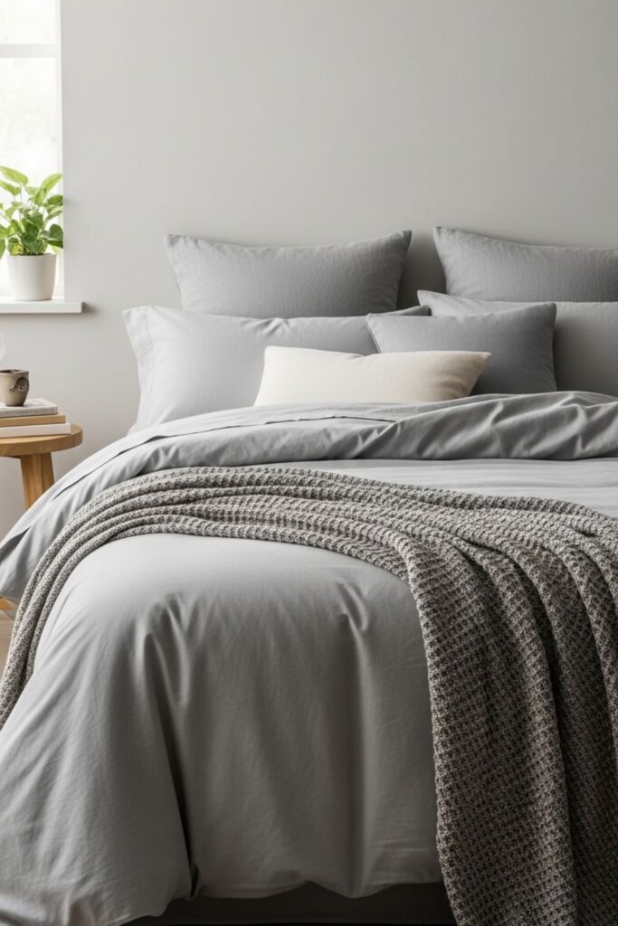 Layering pillows, blankets, and throws in calm tones adds visual softness without making the room feel crowded. The goal is comfort rather than decoration, allowing the bed to feel inviting at any time of day.